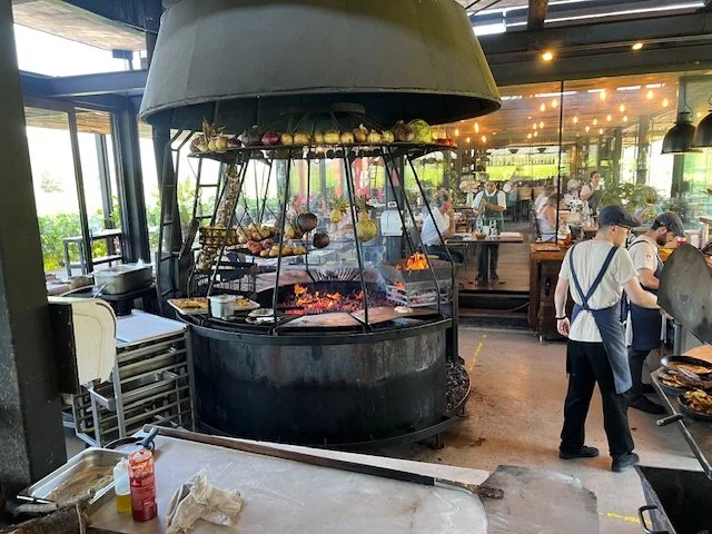 After breakfast at the hotel, we’ll board the mini-buses and head about twenty minutes north to Viña Maquis, a fourth-generation winery with the highest rated Cabernet Franc in all of Chile. We’ll start on the winery’s rooftop enjoying our morning Rosé while soaking in the views. Then we’ll take a walk through their “biological corridor,” a fascinating sustainable habitat that’s home to many of the plants and animals that are beneficial to the vines. Their famous “Franco” vineyard is right next to the corridor so naturally we’ll have a glass in hand of their uber-premium Cab Franc to enjoy as we walk alongside the very vines that the wine came from. After a few more minutes of walking we’ll reach the river where we’ll stop for a minute to grab a sandwich to enjoy as we continue our trek. Our glasses will be refilled there with some Carmenère that came from the vines we’re walking past growing alongside the river. Talk about experiencing a sense of place! Finally, we’ll end up at a barn-like tasting room at the end of the river where we’ll enjoy a three-year vertical of their high-end Carmenère along with a few snacks just to take the edge off. (We’re just going to have light snacks throughout the day instead of a formal lunch as we’re going to enjoy the mother of all asados for dinner tonight.)