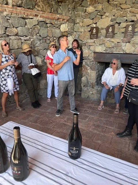 After Salentein we’re heading to the Gualtallary region, home to some of the most renown high-altitude vineyards in Argentina. I had wanted to visit Luca here which is a tiny winery founded by Laura Catena but it is simply too small for groups our size plus they’re not set up for visitors. So we’re doing the next best thing! Adrianna Vineyard (that we wrote about earlier) is right down the road from Luca and has a private stone “Mirador,” or lookout building that overlooks the vineyard. Since it’s unoccupied, they are graciously giving us the gate code so our groups can make a quick stop there to go up to the Mirador’s roof deck. We’ll bring some Luca wines with us on the Sprinters so we’ll pop a few bottles up there so you can enjoy the wines while seeing the actual vines they were made from. Kinda geeky, yes ... but definitely a great photo op and an experience you won’t forget and something no other tour will ever be able to do. (Plus you’ll be ready for a glass of wine by then!)
